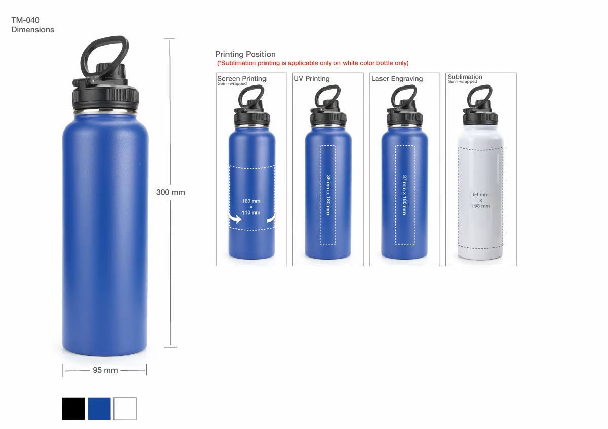 Double wall Stainless steel Bottles with easy-to-carry wide loop handles and trendy Matt finish colors, Vacuum insulated feature that keeps beverage temperature much longer, and spout lid that secures your drink from spilling.