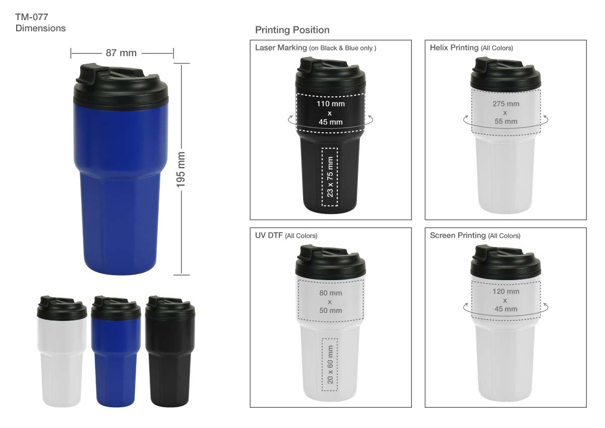 Introducing our 473ml Double Wall Stainless Steel and PP Tumblers with a Flip-Top PP Lid. These tumblers feature a sleek matte finish in white, blue, and black, combining style with functionality. The double-wall construction ensures your drinks stay at the ideal temperature, while the flip-top lid offers easy access and spill resistance. Perfect for keeping your beverages hot or cold on the go.