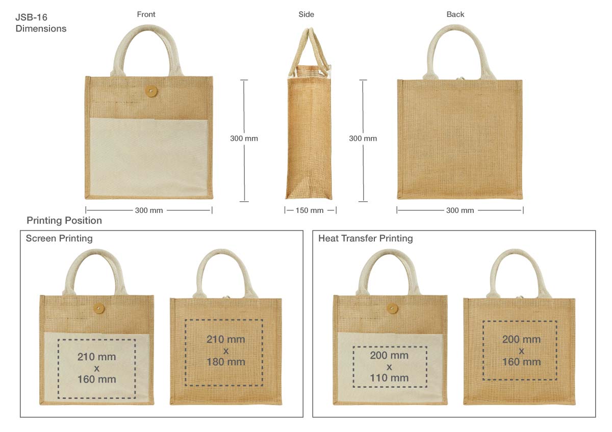 Eco-Friendly Jute Bags with Front Cotton Pocket & Button Closure
