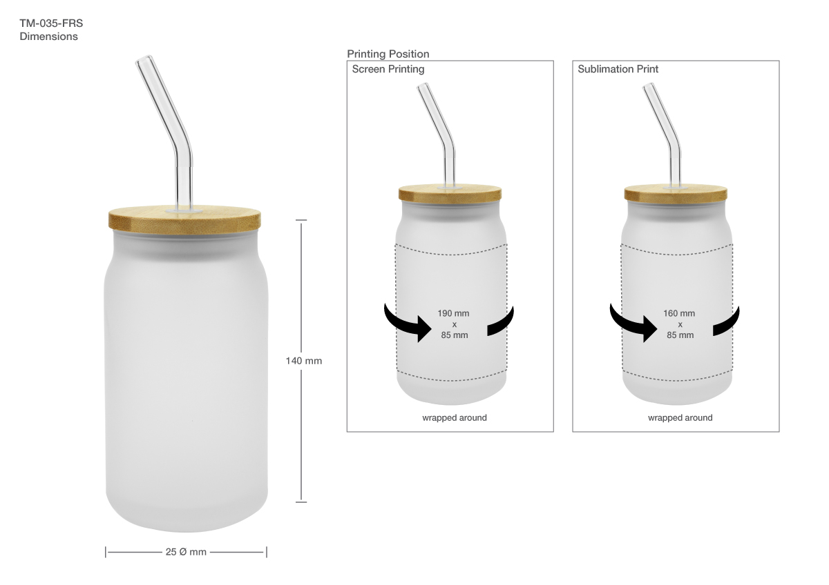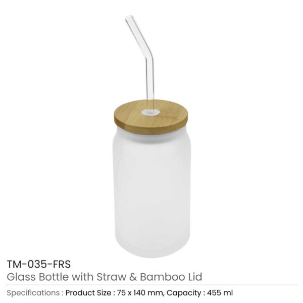 455 ml Sublimation Frosted Glass Bottle with Straw and Bamboo Lid with Branding Options.