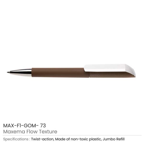 Maxema flow texture pens are cool and creative custom printed pens. They had crafted with reliable and highly resistant ABS plastic material. Thus, they, are durable and safe for use. Its barrel had specially crafted with a solid color. Thus, it has a glossy finish on the whole barrel. The whole barrel of the Maxema flow texture pen is in the same color. However, it has a creative clip that is in white. These are excellent personalized plastic pens for the promotion of small brands.