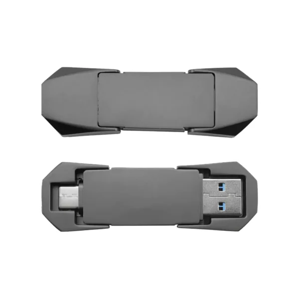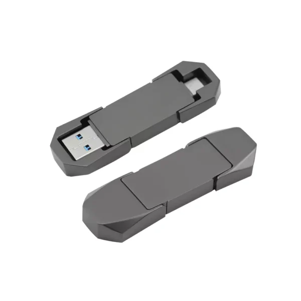The OTG USB 32GB combines a sleek design with cutting-edge technology, featuring dual connectors (USB 3.0 and Type-C) for fast, seamless data transfer. With a stylish gun metal finish and a durable swivel design, it’s the perfect portable storage solution for both personal and professional use.