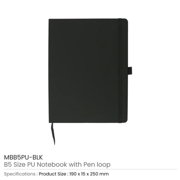 PU Notebooks B5 Size with Pen Loop, Ribbon Bookmark, and Elastic Band