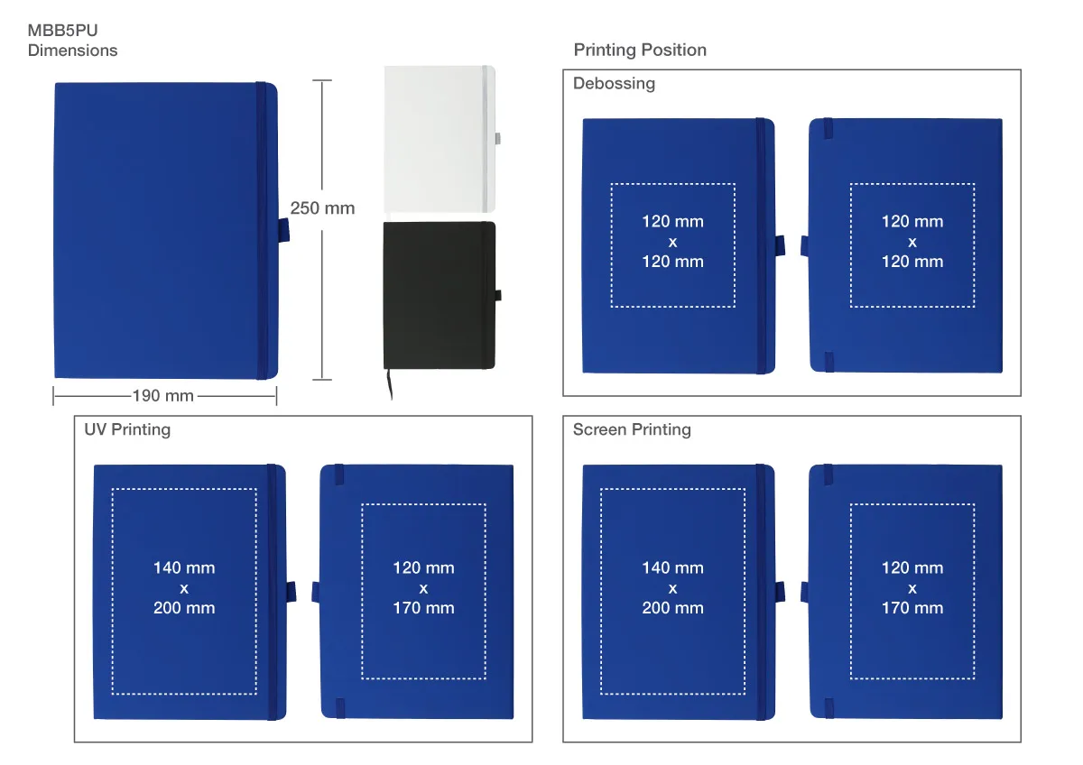 PU Notebooks B5 Size with Pen Loop, Ribbon Bookmark and Elastic Band