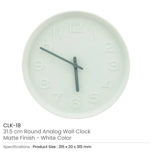 Our Round Analog Wall Clock combines a clean, elegant white matte finish with reliable quartz movement to bring timeless style and accurate timekeeping to offices, homes, classrooms, and event spaces. The embossed number digits and clearly marked hour and minute hands make it exceptionally easy to read from a distance, while the lightweight ABS plastic construction ensures durability and affordability. Supplied in a top-open white carton, this clock is ideal for corporate gifts, branded merchandise, and bulk promotional orders.