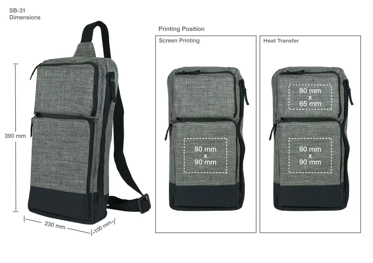 Sling Crossbody Bags in Grey and Black Polyester Material