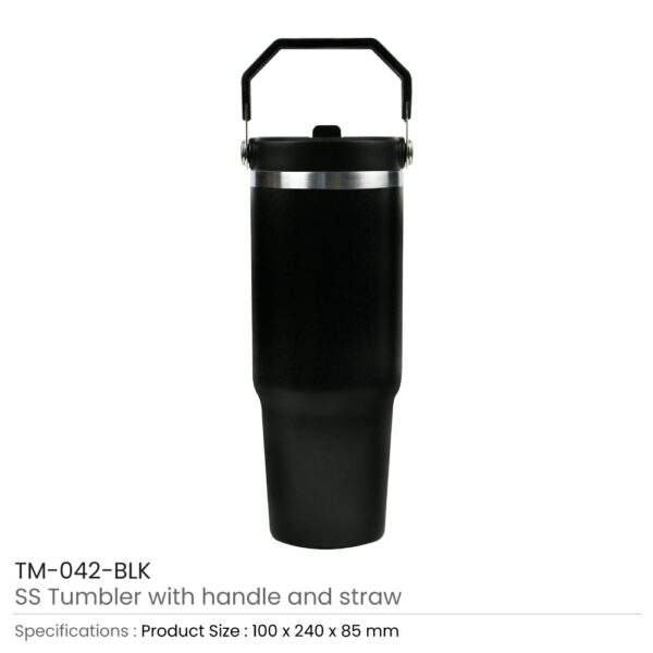 Tumbler with Handle and Straw SS Double Wall 900ml