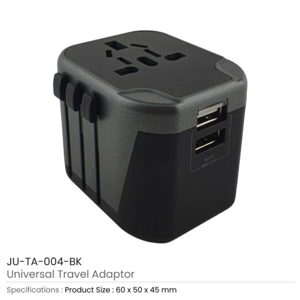 Universal Travel Adaptor Black Matte Finish (US, UK, AUS, EU).